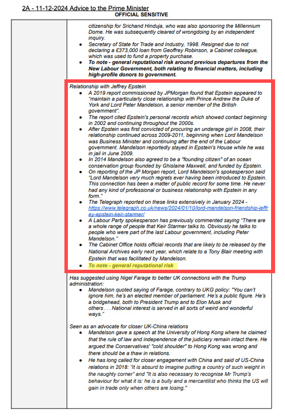 These documents confirm what we already knew: Keir Starmer was aware of Mandelson’s relationship with the world’s most notorious paedophile when appointing him US Ambassador.